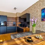 Klinger Downtown Central City High Floor 布拉迪斯拉发坐落于Ruzinov区,设有日光浴,阳光露台 和凉亭. 在该地区参观很容易,公寓距离马焦海滩有2公里,距离旧桥有1.2公里.